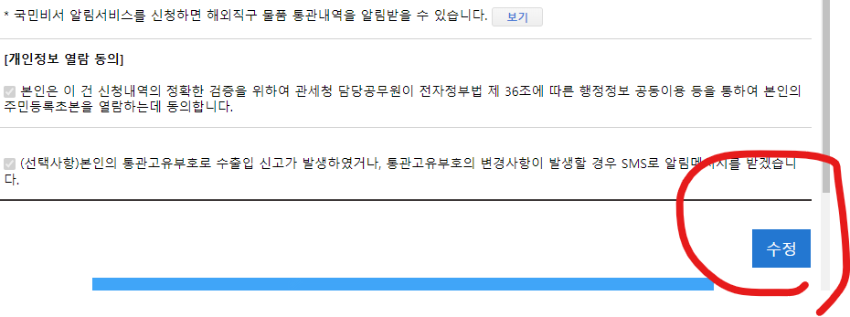 체크를 해두시면 해외직구 하실 때마다 카카오톡으로 국민비서 알림톡을 받아보실 수 있으니