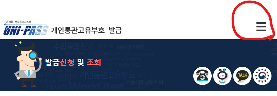 메인 화면에서 표시된 부분을 클릭하시면 해외직구 통관내역조회 < 버튼이 있습니다.