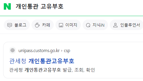 검색창에  개인통관 고유부호 를 검색합니다.