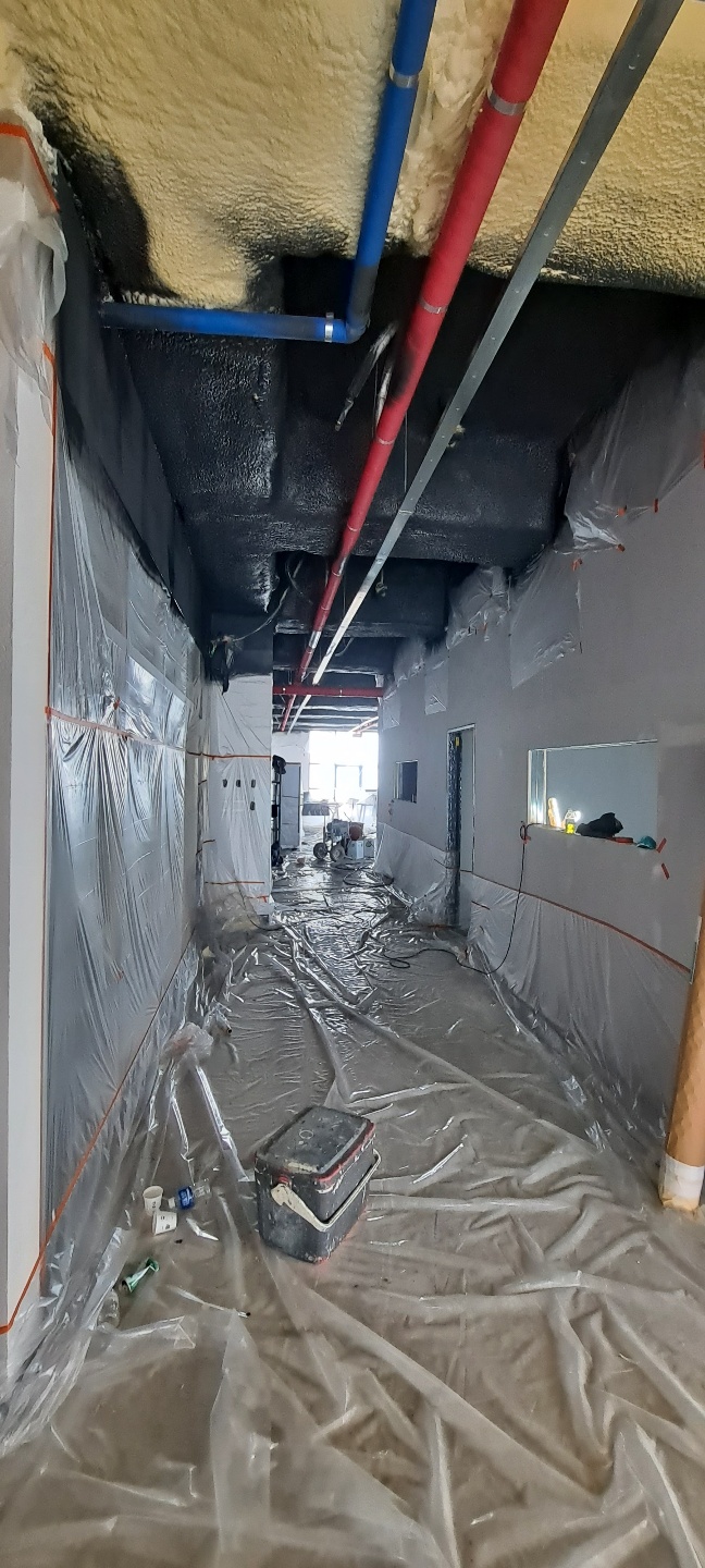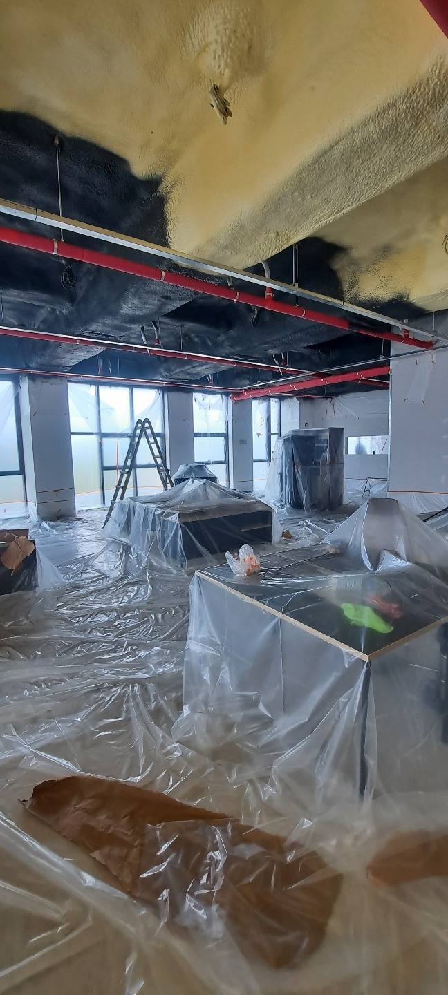 보통 사무실이나, 커피숍등 천정을 노출로 많이 하고 있습니다. 노출로 하게 될 경우 꼭대기층은 경질우레탄폼이 시공되어 있을 텐데요. 그냥 사용해도 무방하긴 하지만 보기에 깔끔하지 않아 칠하는 경우가 많습니다. 보양작업( 집기류, 창문 등 커버링테이프와 비닐로 덮고 바닥에 분진이 떨어져 바닥에 페인트가 묻을 수 있으니 바닥보양도 꼼꼼히 해주시면 좋습니다.