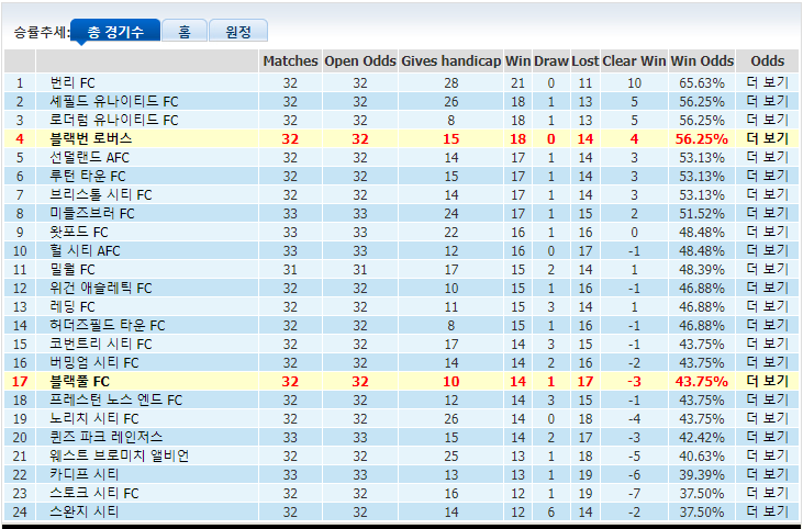 블랙번로버스vs블랙풀