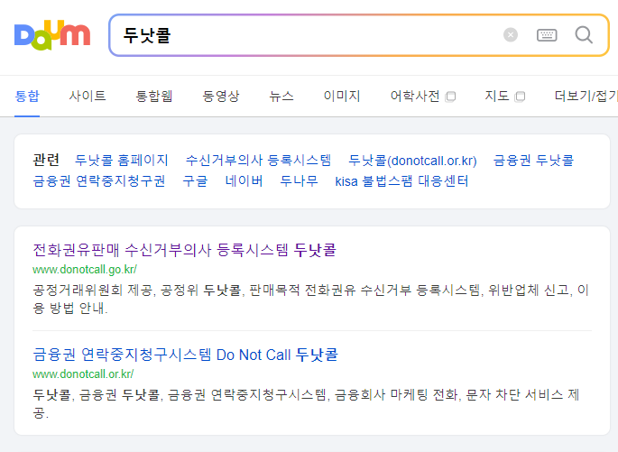 각각 들어가서, 두낫콜 등록과 수신거부등록을 신청만 하시면 끝이납니다.