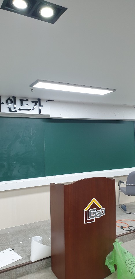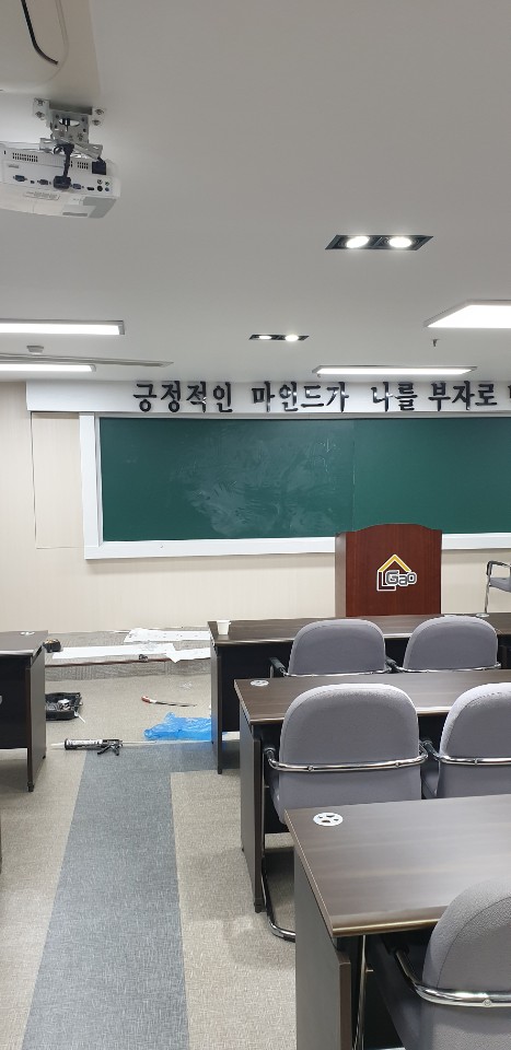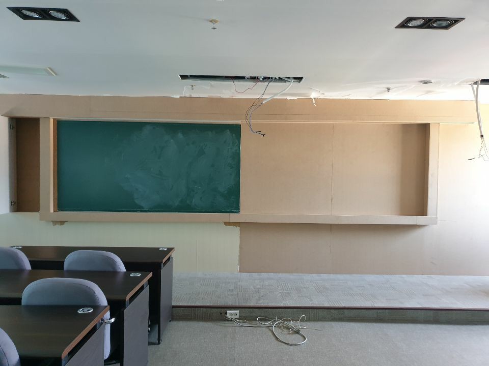무언가 어설프다고요 !? 네 맞습니다! 한쪽면의 칠판이 시공되지 않은 상황입니다.