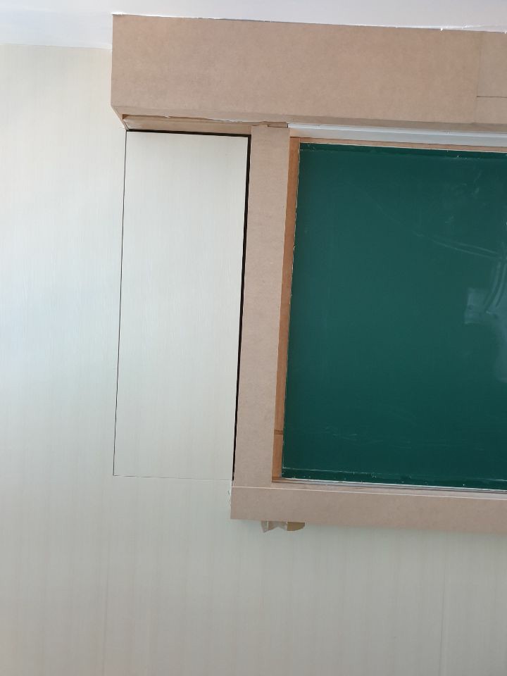 설치된 부분은 기존의 칠판이며 이동식 칠판입니다. 세트로 교체를 진행하면 가운데 만나는 부분의 단차를 최소로 줄일