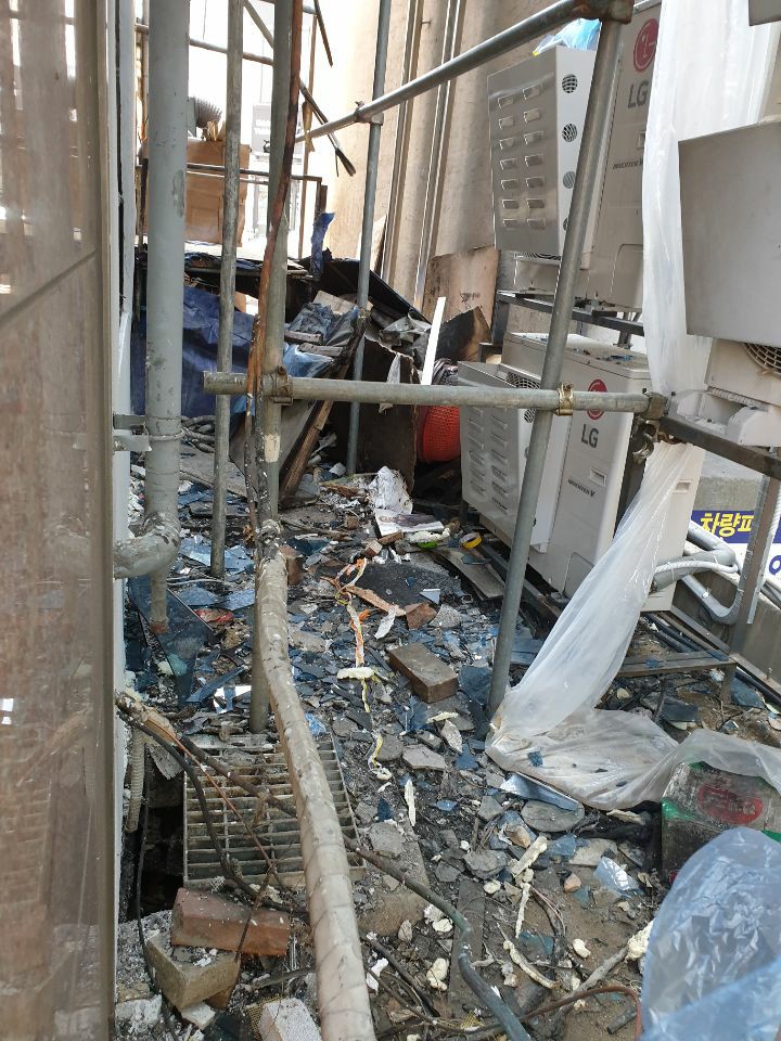 이 유리파편들과 여러가지 파편들의 양을 보시면 아시듯 피해와 화재 발생 당시 상황이 얼마나 급박했고 심했는지