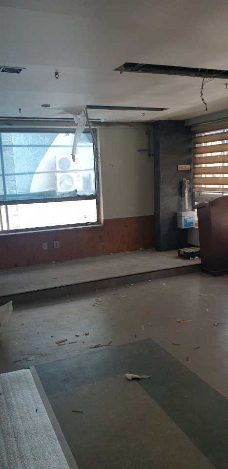 기존에 저 부분은 칠판으로 막어져 있었던 곳인데 화재발생으로 인하여 철거를 한 상태입니다. 그나마 다행인 것은