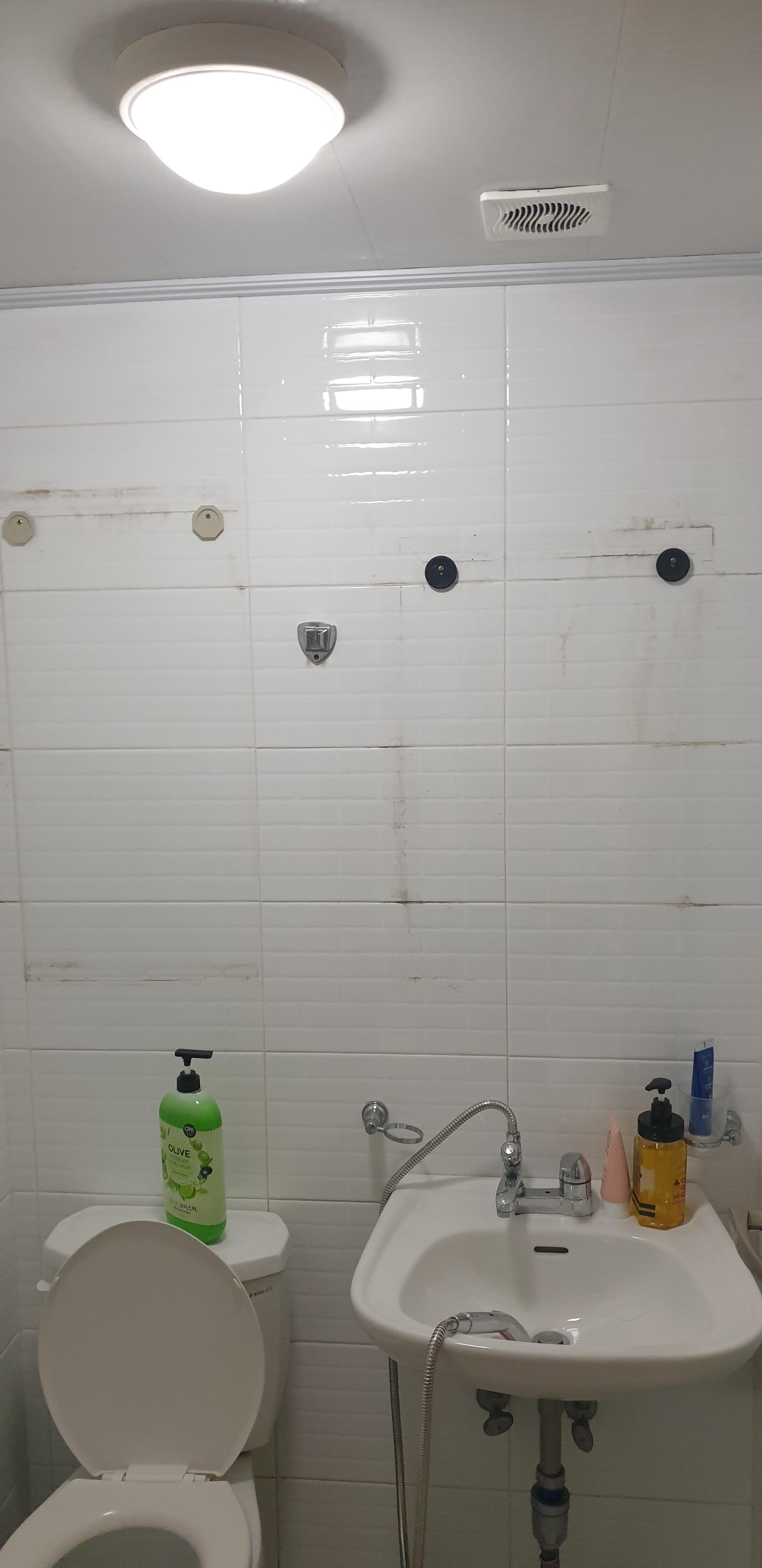 아직 욕실에 백열전구 등 사용하고 계시나요? 백열전구 등은 발열이 심하고, 전력소비도 많습니다. 오늘은 욕실 악세와 조명, 환풍기 교체(원룸)를 하였습니다. 단순 작업이긴 하지만 작업하며 청소도 해야 하고, 의외로 잔손이 많이 가는 작업이며, 악세 교체만 한다고 해서 딱 끝내는 것이 아닌 변기 고압호스, 세면대 고압호스 등 다른 문제는 없는지 확인도 해드리는 작업을 진행했습니다. 글 읽어주시는 모든 분들도 손쉽게 가능하니 건물주님이거나 월세, 전세를 주시는 주인 분들이라면 방법을 알아 두시는 것도 좋을듯합니다.