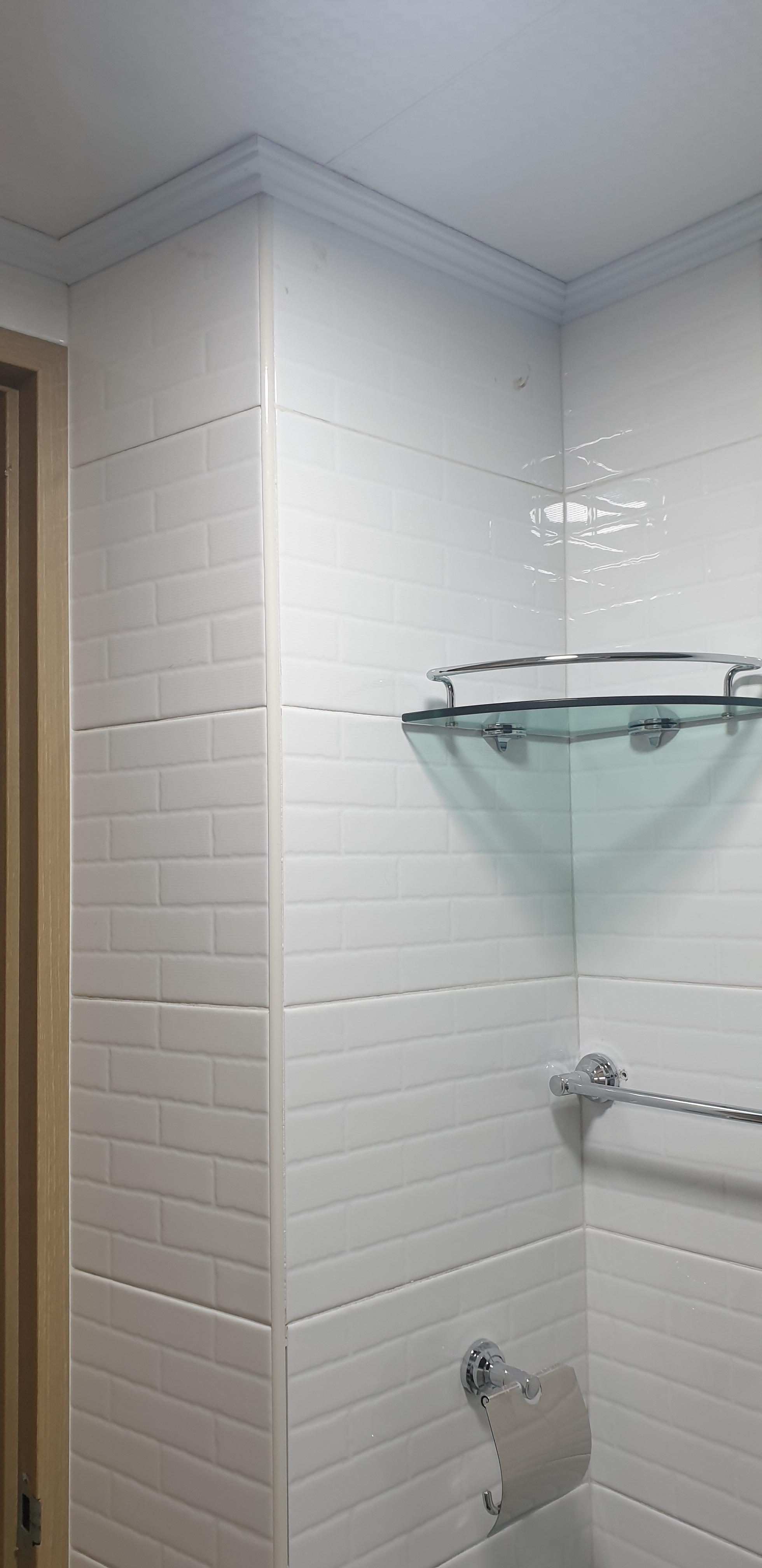 조명도 교체하고, 환풍기 배선도 확인하고, 코너선반도 하나 추가 설치를 해 드리고 수건걸이, 휴지걸이, 비누대,컵대 설치까지 완료했습니다. 주인분이 서울에 살고 계셔서 사진으로 작업 완료된 부분을 보여드리기 위해 사진까지 찰칵! 고압호스 앵글밸브는 양호한 상태였습니다. 오늘도 퇴근~ 오예오예 ^^ 궁금하신 건 댓글 부탁드릴게요!