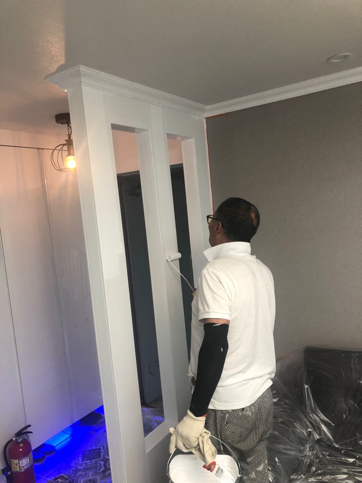 둥 등을 보양작업을 하고 페인트 작업을 진행하였는데요 이때 주의하실 점! 종이테이프를 합지 도배 지위에 붙이고 마감