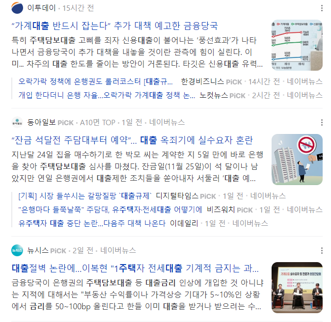 - 금감원에서 가계부채증가를 늦추라고 하면 시중 은행들은 가산금리를 높여 은행이익을