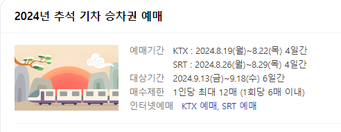 2024 추석 기차표 예매는 매수 제한이 걸려 있습니다.
