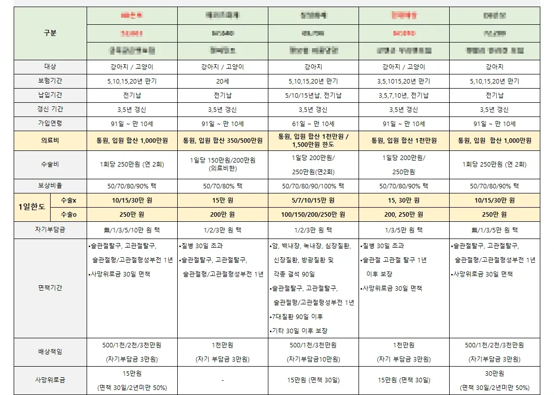 위의 상세한 비교표는 다양한 펫보험 옵션을 제시하고 있습니다.