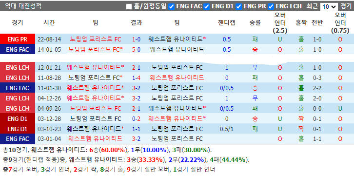 노팅엄 포리스트 FC는 며칠 전 맨체스터 시티전에서 전반전 뒤졌던 상황에서 최종 무승부를 거두며 자신의 승부근성을 입증했습니다. 노팅엄 포리스트 FC는 올 시즌 웨스트햄 유나이티드와 첫 번째 맞대결에서 승점 3점을 챙겼습니다. 그래서 노팅엄 포리스트 FC는 이번 원정에서 높이 평가해 드릴 만하다고 생각합니다.