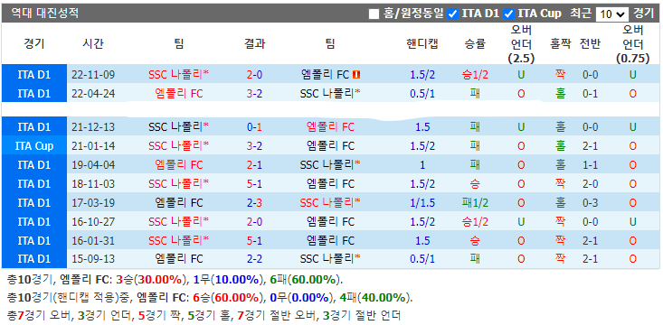 SSC 나폴리는 현재 랭킹순위에서 선두자리를 달리고 있습니다. SSC 나폴리는 요즘 리그 7연승을 질주했으니까 1위 굳히기에 나섰습니다. 특히, SSC 나폴리는 요즘 리그 원정 4경기에서 모두 무실점 승리를 챙겼습니다. 공격수 빅토르 오시멘 선수가 이 동안 4경기에서 모두 골 맛을 봤습니다. 그리고 SSC 나폴리는 요즘 엠폴리 FC를 상대로 10경기에서 압도적인 성적을 만들었습니다. 그래서 SSC 나폴리는 이번 원정에서 승점 3점을 챙길 것이라 예상합니다.