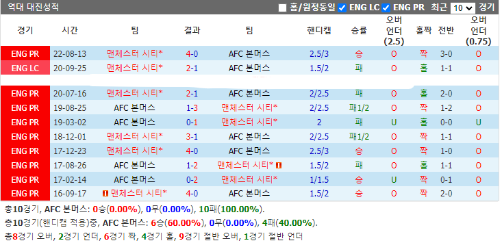 02.26(일) 02:30 EPL 본머스:맨체스C