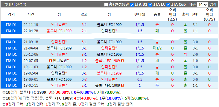 인터밀란은 최근 4경기에서 3승1무를 기록하고 라우타로 마르티네스가 월드컵 후 맹활약을 펼쳤습니다. 그는 2023년부터 리그에서 6골을 넣었습니다. 볼로냐 FC 1909는 최근 리그 홈 4경기가 단 1승만 얻었습니다. 그래서 인터밀란은 이번에 원정에서 승리를 거둘 거라 예측합니다.