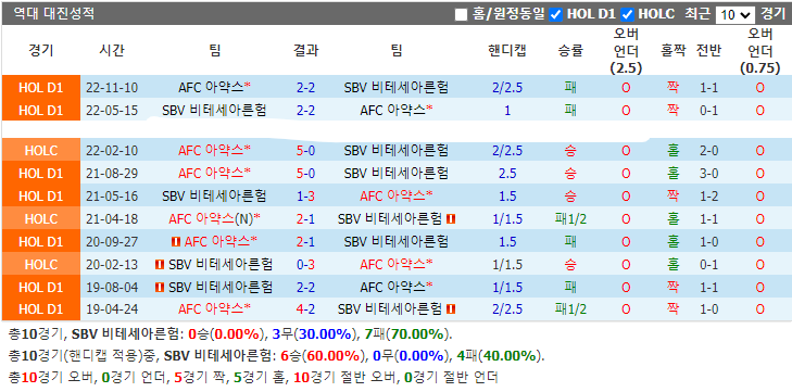 AFC 아약스는 최근 컨디션이 좋아서 리그 4연승을 질주했습니다. AFC 아약스는 이 동안 매경기 적어도 3득점을 터뜨렸습니다. 그래서 AFC 아약스는 이번 원정에서 승리를 거둘 것이라 생각합니다.