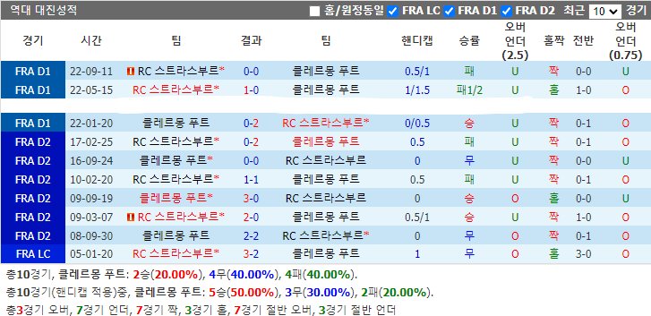 클레르몽 푸트는 최근 5경기가 무승전적을 기록하고 1골도 넣지 못하고 공격라인에 발휘가 떨어져서 이번에 홈에서 지난 라운드가 승리에 복귀한 RC 스트라스부르와 만나 패할 거라 예측합니다.