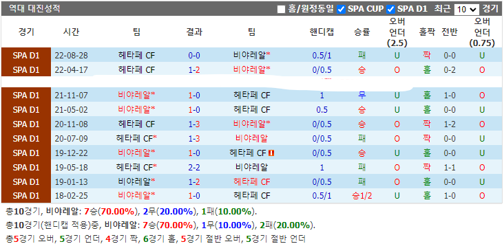 비야레알은 양팀의 역대 대진전적에서 압도적인 우세를 차지했지만 강팀과 만나 패전을 당하고 약팀과 만나도 의외로 패전을 당했습니다. 팀은 최근 4연패를 당해서 사기가 떨어져서 이번에 승점 1점을 얻을 것을 주요 목표로 해야 합니다.
