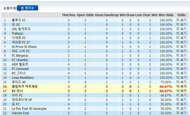 올림피크 마르세유는 최근 승점을 많이 기록했습니다. FC 안시는 낮은 수준 리그에 속해 실력이 약합니다. 그래서 올림피크 마르세유는 이번에 승리할 거라 봅니다.