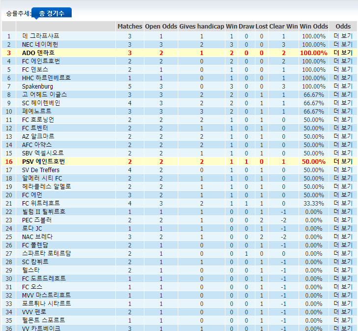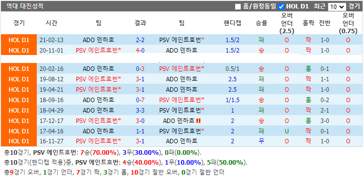 ADO 덴하흐는 최근 컨디션이 좋지만 두팀의 지난 10번 맞대결에서 무승행진을 이어가서 이번 원정경기에서 과대평가할 가치가 없다고 봅니다.