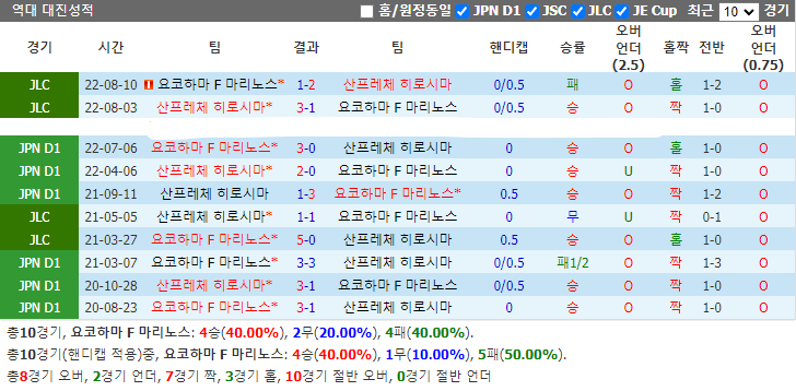 요코하마 F 마리노스는 최근에 리그에서 2연승을 얻었습니다. 그중 팀은 경기마다 전반전에 우세를 차지하고 결국 다 2골을 넣을 수 있습니다. 이번에 홈팀은 앞 2리그전이 이긴 적이 없는 산프레체 히로시마와 만나 이길 거라 생각합니다.