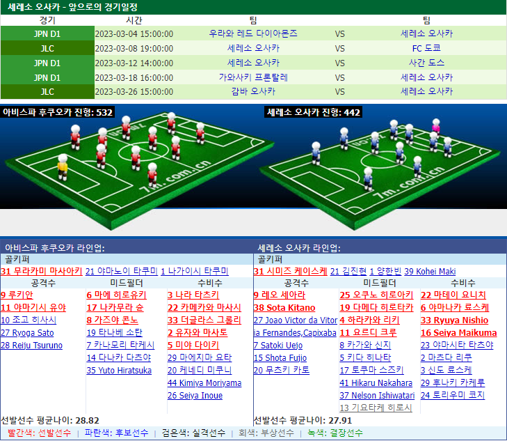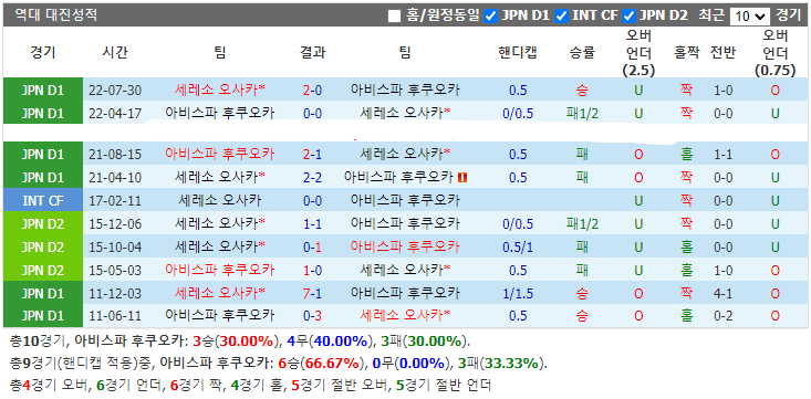 세레소 오사카는 지난 시즌 리그 원정에서 승점 25점을 획득했습니다(리그 3위). 세레소 오사카는 새 시즌 리그 첫 라운드에서 승리의 맛을 보지 않았지만 여전히 좋은 공격력을 괴시했습니다. 세레소 오사카는 이번 원정에서 승리를 거둘 것이라 예상합니다.