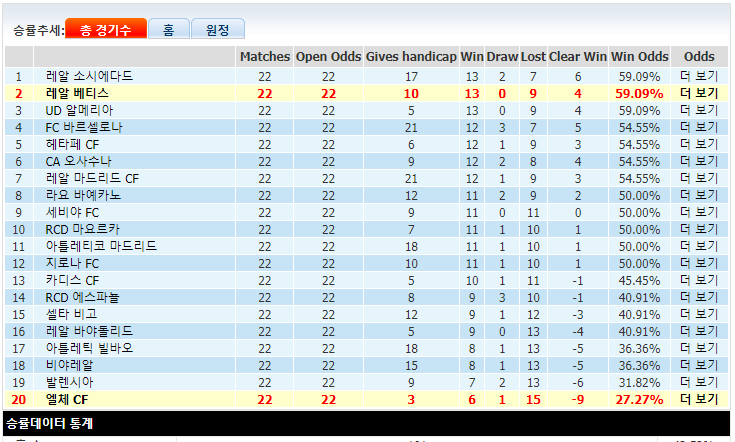 레알 베티스는 최근 컨디션이 좋아서 2전 전승을 챙겼습니다. 미드필더 세르히오 카날레스 선수가 요즘 리그 3경기 연속골을 완성했습니다. 레알 베티스는 이번 원정에서 막위에 머물러 있는 엘체 CF를 만나 승리를 거둘 것이라 예상합니다.